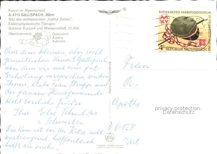 72030235 alte Postkarte Gallspach Kurpark Wasserschloss Fliegeraufnahme postalisch gelaufen Erhaltung siehe scans KatCode: 11390311040805