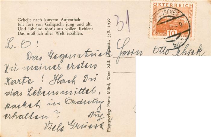 alte Postkarte Gallspach Oberoesterreich AT Abfahrt von Gallspach Kuenstlerkarte postalisch gelaufen Erhaltung siehe scans [FriedD77]