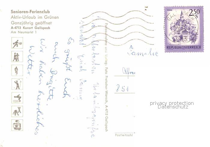 72917229 alte Postkarte Gallspach Senioren Ferienclub postalisch gelaufen Erhaltung siehe scans [KathaD81] KatCode: 11390311040805
