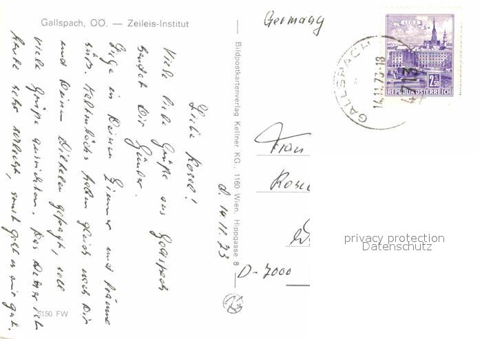 72789886 alte Postkarte Gallspach Zeileis Institut postalisch gelaufen Erhaltung siehe scans [LiesaD40] KatCode: 11390311040805