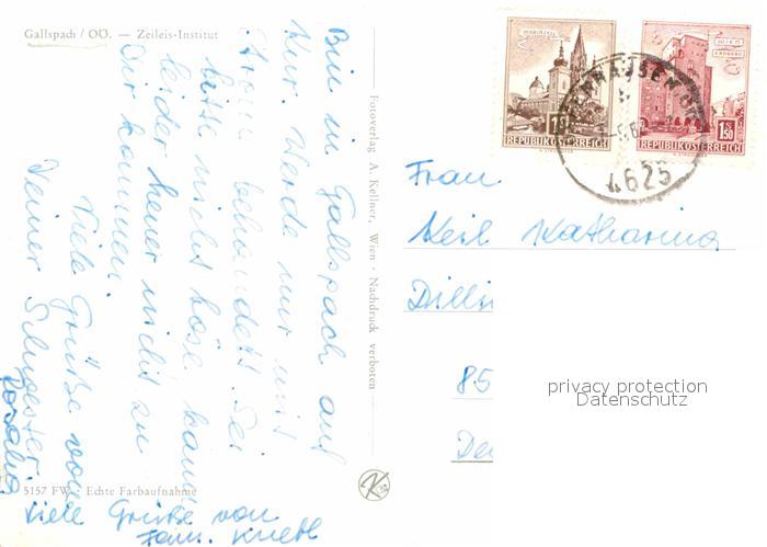 72672065 alte Postkarte Gallspach Zeileis Institut postalisch gelaufen Erhaltung siehe scans [WerneD78] KatCode: 11390311040805