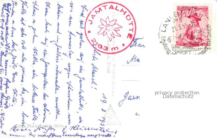 74152035 alte Postkarte Galtuer Landeck Tirol AT Jamtalhuette mit Jamspitze Dreilaenderspitze Silvretta Winterpanorama postalisch gelaufen Erhaltung siehe scans [FriedD77] KatCode: 11390334070606