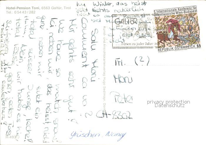 72170475 alte Postkarte Galtuer Tirol Hotel Pension Toni postalisch gelaufen Erhaltung siehe scans KatCode: 11390334070606