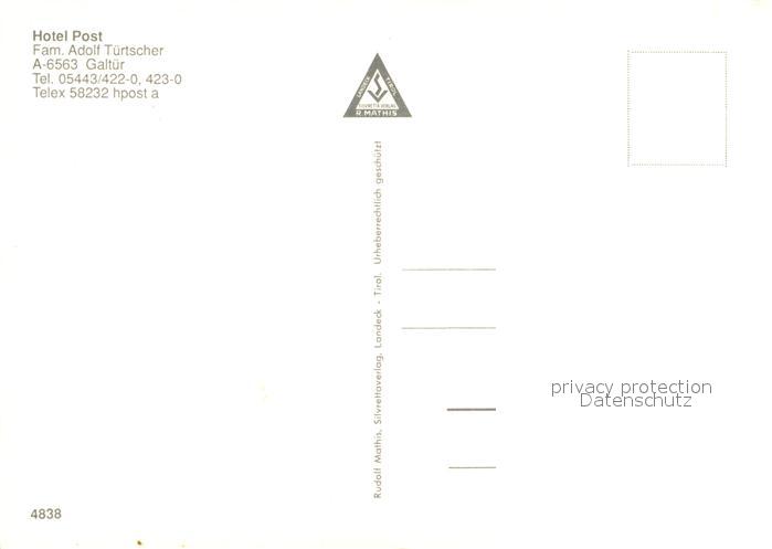 13326207 Galtuer Tirol Hotel Post postalisch nicht gelaufen Erhaltung siehe scans [KathaD81] KatCode: 11390334070606