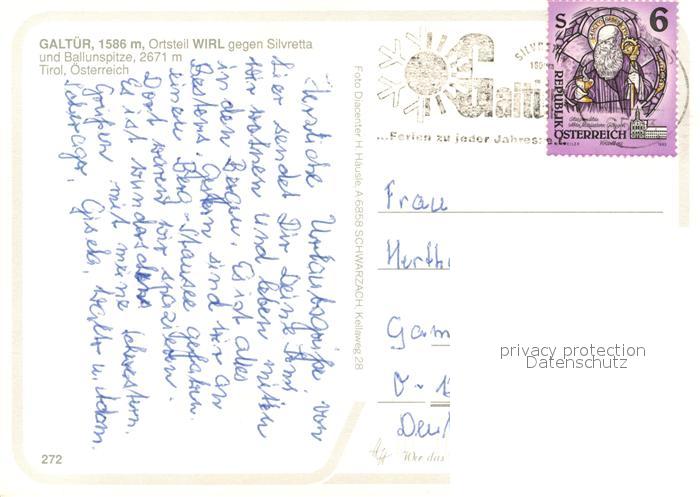 73160915 alte Postkarte Galtuer Tirol OT Wirl mit Silvretta und Ballunspitze postalisch gelaufen Erhaltung siehe scans [WerneD78] KatCode: 11390334070606