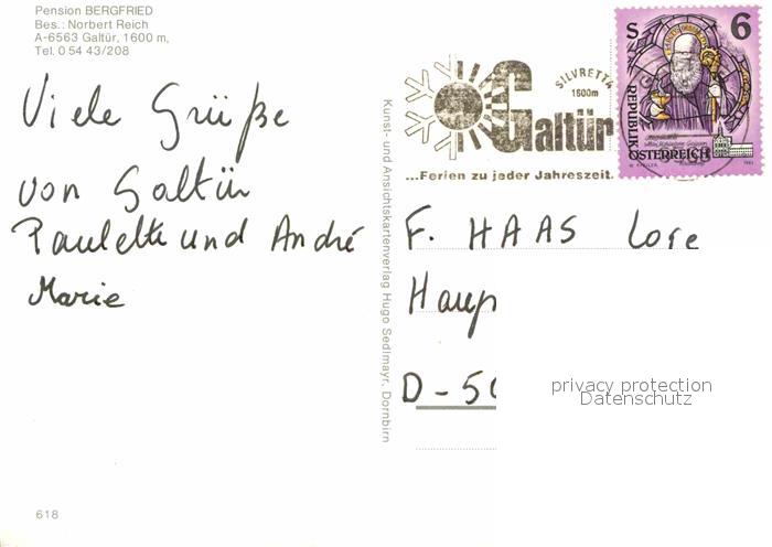 72755637 alte Postkarte Galtuer Tirol Pension Bergfried postalisch gelaufen Erhaltung siehe scans [WerneD78] KatCode: 11390334070606
