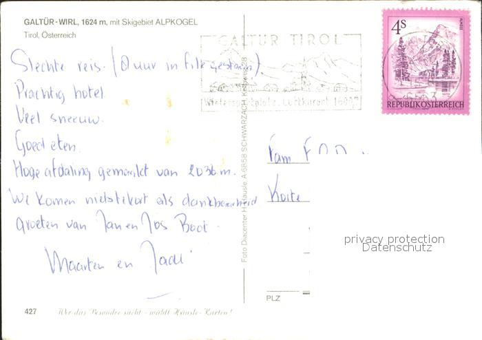 72093890 alte Postkarte Galtuer Tirol Wirl mit Skigebiet Alpkogel postalisch gelaufen Erhaltung siehe scans KatCode: 11390334070606