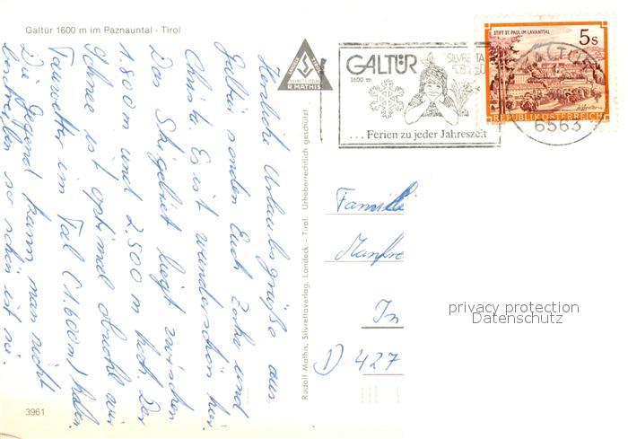 73259171 alte Postkarte Galtuer Tirol postalisch gelaufen Erhaltung siehe scans [NatalD47] KatCode: 11390334070606