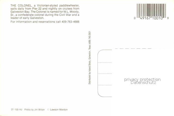 72706923 Galveston Texas Colonel Missisippidampfer postalisch nicht gelaufen Erhaltung siehe scans [AndreD76] KatCode: 14140460000000