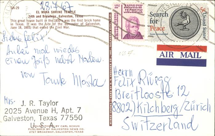 11491832 old postcard Galveston Texas El Mina Shrine Temple postalisch gelaufen Erhaltung siehe scans KatCode: 14140460000000