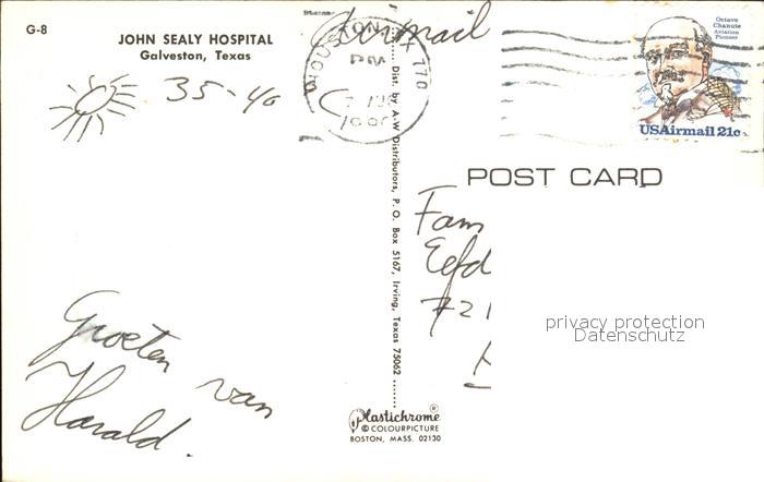 72460030 old postcard Galveston Texas John Sealy Hospital postalisch gelaufen Erhaltung siehe scans KatCode: 14140460000000