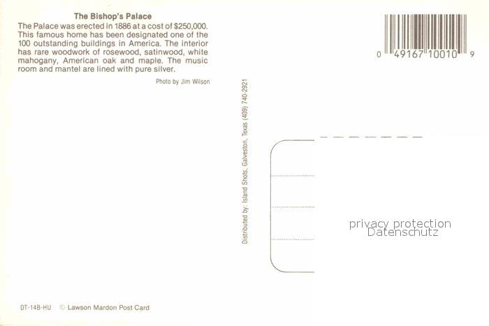 72706907 Galveston Texas The Bishop’s Palace postalisch nicht gelaufen Erhaltung siehe scans [AndreD76] KatCode: 14140460000000