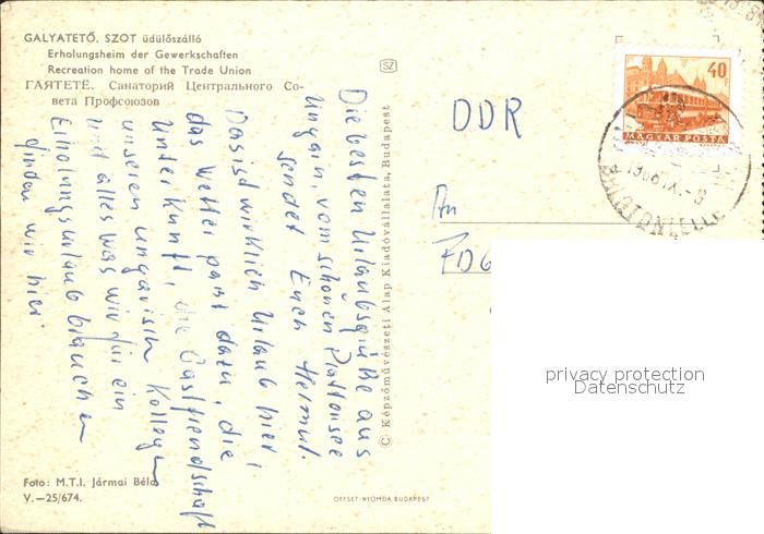 old postcard Galyatetoe Erholungsheim der Gewerkschaften postalisch gelaufen