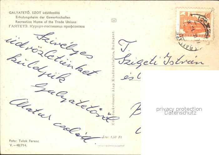 old postcard Galyatetoe Erholungsheim der Gewerkschaften postalisch gelaufen Erhaltung siehe scans