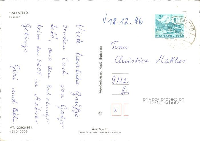old postcard Galyatetoe Rehkitz postalisch gelaufen Erhaltung siehe scans