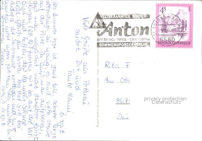 72079942 alte Postkarte Galzig Schigebiet Sonnenterrasse Sankt Anton postalisch gelaufen Erhaltung siehe scans KatCode: 11390334070621