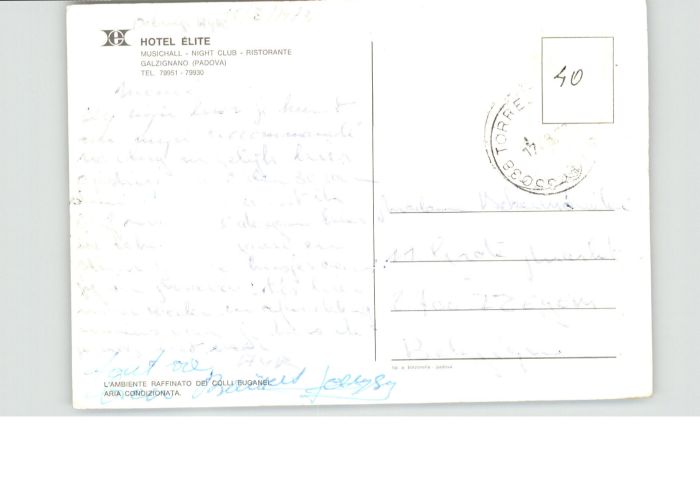 old postcard Galzignano Padova Hotel Elite postalisch gelaufen