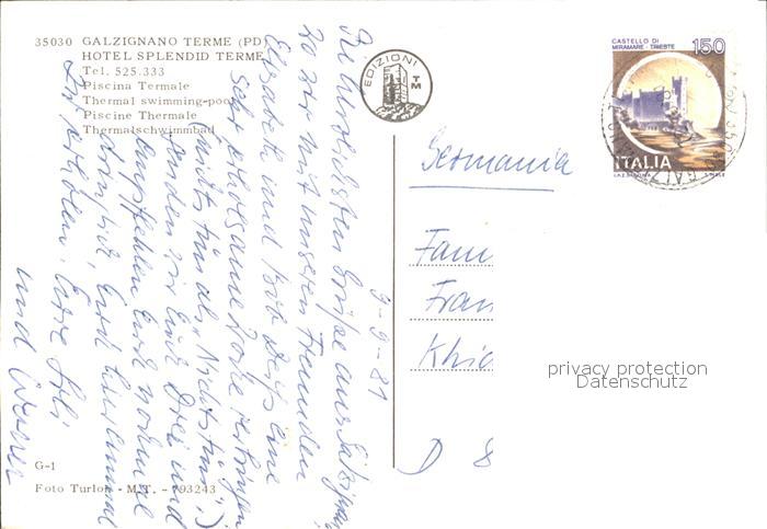 old postcard Galzignano Terme Hotel Splendid Terme Swimming Pool postalisch gelaufen Erhaltung siehe scans