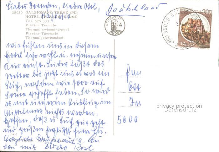 old postcard Galzignano Terme Hotel Splendid Terme Thermalschwimmbad postalisch gelaufen