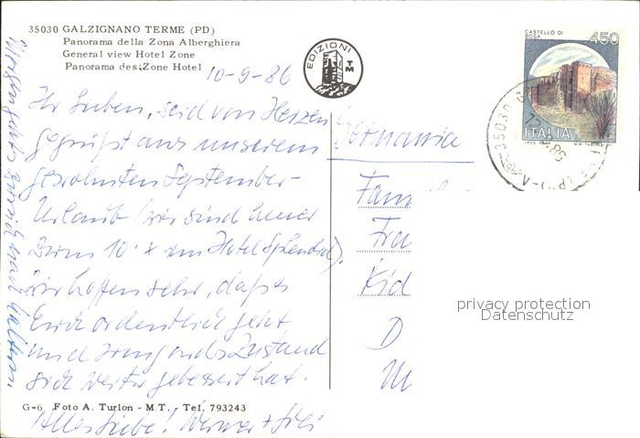 old postcard Galzignano Terme Panorama della Zona Alberghiera veduta aerea postalisch gelaufen Erhaltung siehe scans