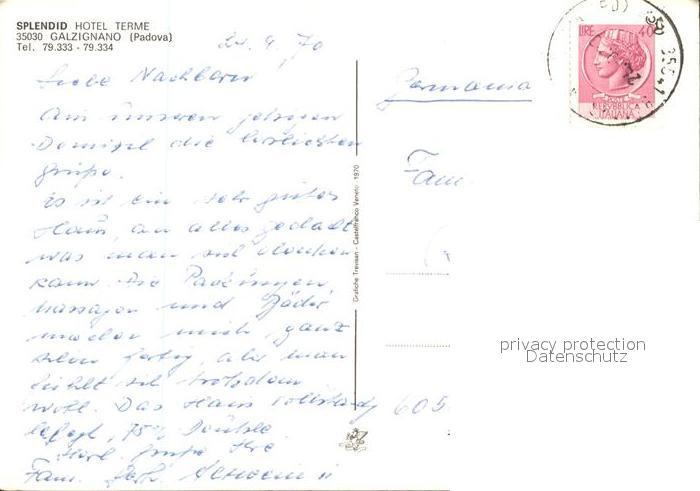old postcard Galzignano Terme Splendid Hotel Terme postalisch gelaufen