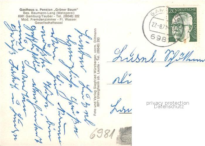 72991285 alte Postkarte Gamburg Burgaufgang Brunnen Wasserschloss Grafenkapelle postalisch gelaufen Erhaltung siehe scans [WerneD78] KatCode: 11110008128128