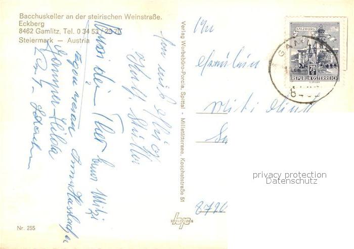 73086516 alte Postkarte Gamlitz Bacchuskeller postalisch gelaufen Erhaltung siehe scans [PaolaD17] KatCode: 11390225061009