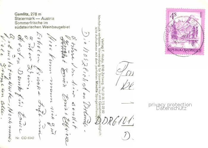 72699891 alte Postkarte Gamlitz Panorama Kirche Strassenpartie postalisch gelaufen Erhaltung siehe scans [FriedD77] KatCode: 11390225061009