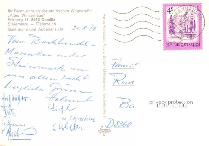 72673296 alte Postkarte Gamlitz Restaurant Altes Winzerhaus postalisch gelaufen Erhaltung siehe scans [FriedD77] KatCode: 11390225061009