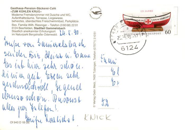 73877341 alte Postkarte Gammelsbach Gasthaus Pension Zum kuehlen Krug Gastraum Panorama postalisch gelaufen Erhaltung siehe scans [WerneD78] KatCode: 11110006437002