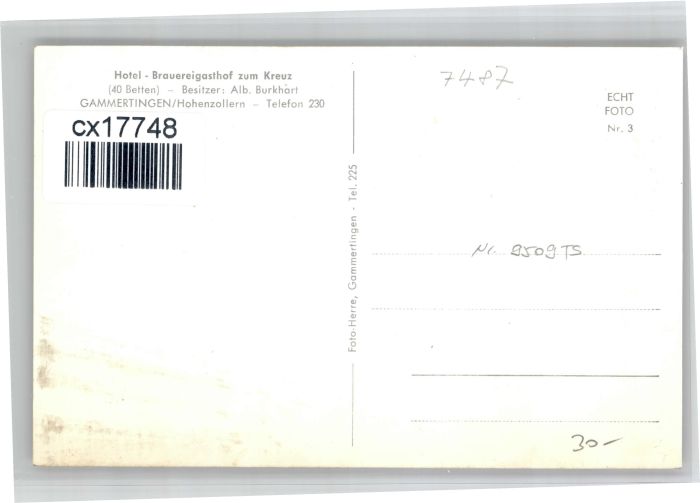30726399 Gammertingen Hotel Gasthof zum Kreuz postalisch nicht gelaufen KatCode: 11110008437031