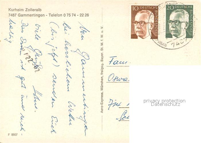 73719895 alte Postkarte Gammertingen Kurheim Zolleralb Fliegeraufnahme postalisch gelaufen Erhaltung siehe scans [WerneD78] KatCode: 11110008437031