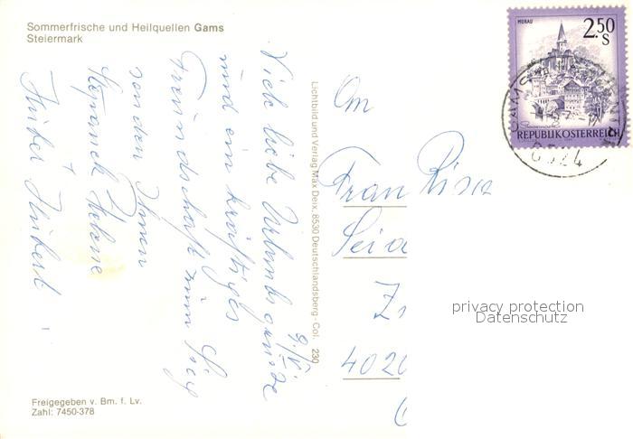 73101889 alte Postkarte Gams Bad Fliegeraufnahme postalisch gelaufen Erhaltung siehe scans [PaolaD17] KatCode: 11390225060307