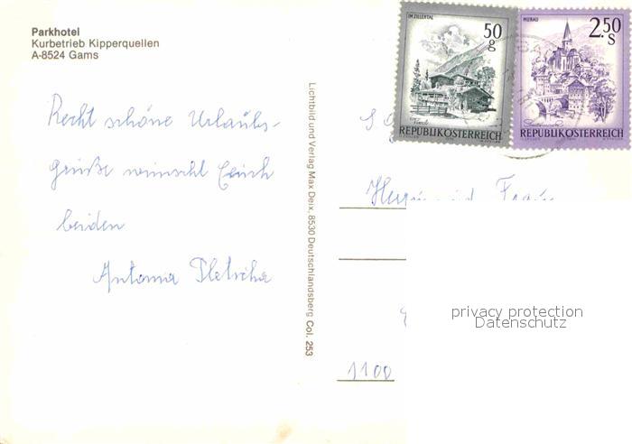 12636551 alte Postkarte Gams Bad Parkhotel postalisch gelaufen Erhaltung siehe scans [LiesaD40] KatCode: 11390225060307