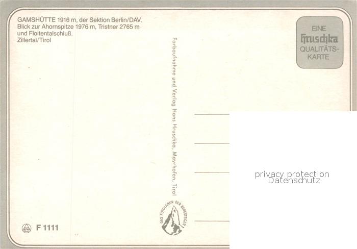 73244746 Gamshuette Ahornspitze Tristner Floitentalschluss postalisch nicht gelaufen Erhaltung siehe scans [KathaD81] KatCode: 11390335070908