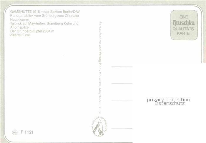72626715 Gamshuette Panorama Blick vom Gruenberg zum Zillertaler Hauptkamm Mayrhofen Zillertal postalisch nicht gelaufen Erhaltung siehe scans [FriedD77] KatCode: 11390335070908