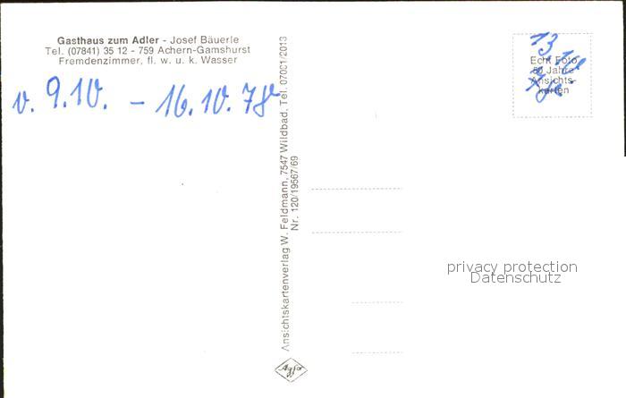 31730831 Gamshurst Gasthaus zum Adler postalisch nicht gelaufen Erhaltung siehe scans KatCode: 11110008317001