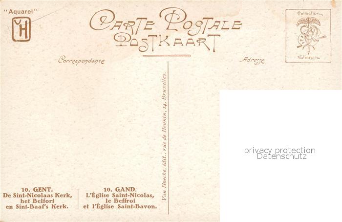 73337150 Gand Belgien Eglise Saint Nicolas le Beffroi Eglise Saint Bavon Aquarel Kuenstlerkarte postalisch nicht gelaufen Erhaltung siehe scans [FriedD77] KatCode: 11070044002660
