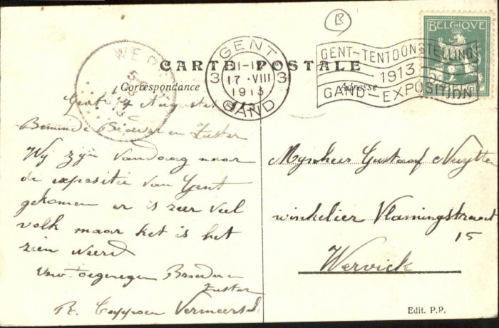 70749095 carte postale Gand Belgien Gand Gent Entree Eingang postalisch gelaufen KatCode: 11070044002660