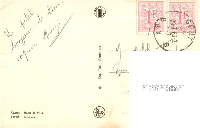 73783413 carte postale Gand Belgien Hotel de Ville postalisch gelaufen Erhaltung siehe scans [FriedD77] KatCode: 11070044002660