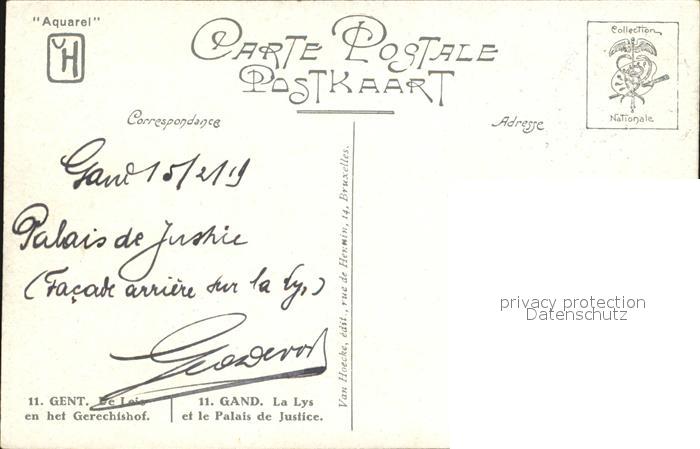42562867 carte postale Gand Belgien La Lys et Palais de Justice Aqarel Peinture Kuenstlerkarte postalisch gelaufen Erhaltung siehe scans [FriedD77] KatCode: 11070044002660