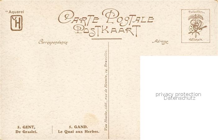 73337203 Gand Belgien Le Quai aux Herbes Aquarel Kuenstlerkarte postalisch nicht gelaufen Erhaltung siehe scans [FriedD77] KatCode: 11070044002660