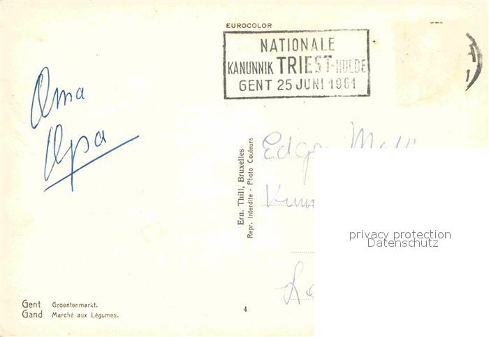 72860053 carte postale Gand Belgien Marche aux Legumes Gemuesemarkt postalisch gelaufen Erhaltung siehe scans [FriedD77] KatCode: 11070044002660