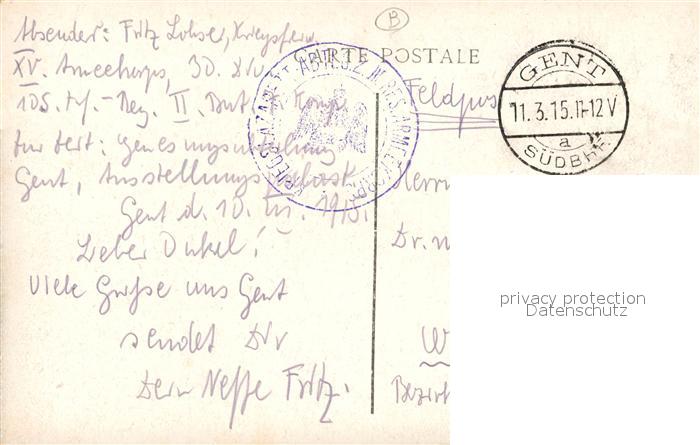 73337234 carte postale Gand Belgien Place de Vendredi Eglise postalisch gelaufen Feldpost Erhaltung siehe scans [FriedD77] KatCode: 11070044002660