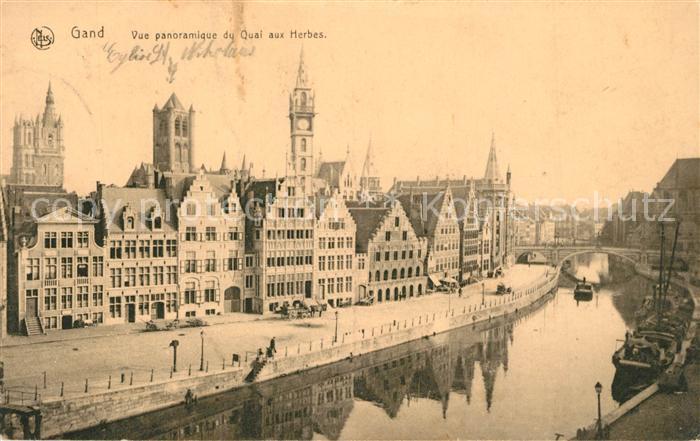 73337261 carte postale Gand Belgien Vue panoramique du Quai aux Herbes postalisch gelaufen Feldpost Erhaltung siehe scans [FriedD77] KatCode: 11070044002660