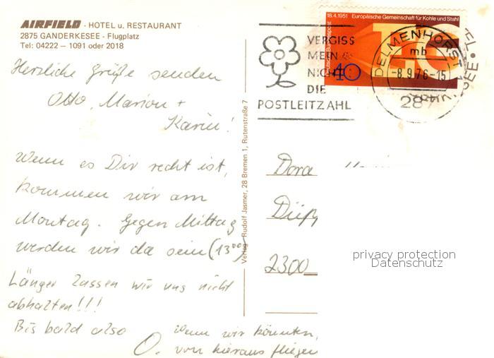 73761345 alte Postkarte Ganderkesee Airfield Hotel Restaurant Gastraeume Zimmer Flugplatz postalisch gelaufen Erhaltung siehe scans [FriedD77] KatCode: 11110003458005
