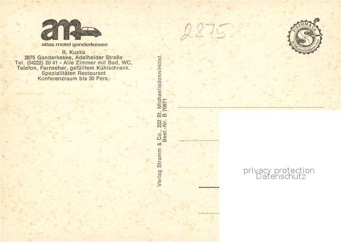 73086219 Ganderkesee Atlas Motel postalisch nicht gelaufen Erhaltung siehe scans [KathaD81] KatCode: 11110003458005