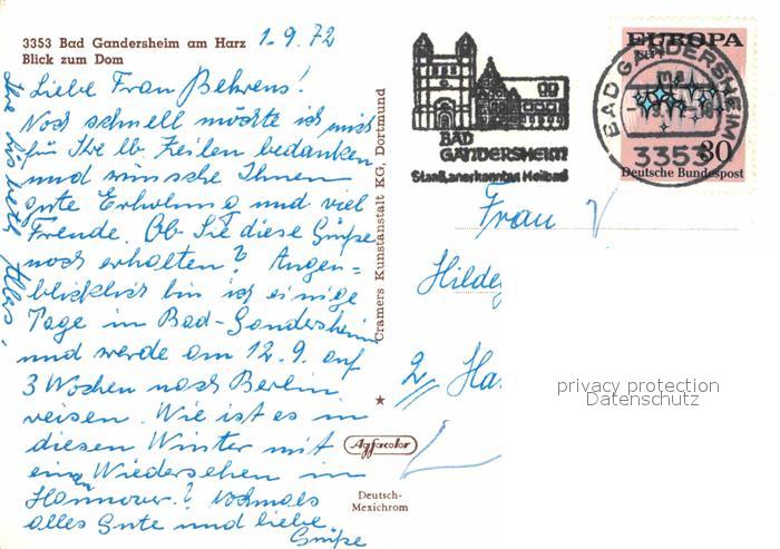 72846555 alte Postkarte Gandersheim Bad Dom postalisch gelaufen Erhaltung siehe scans [KathaD81] KatCode: 11110003155001