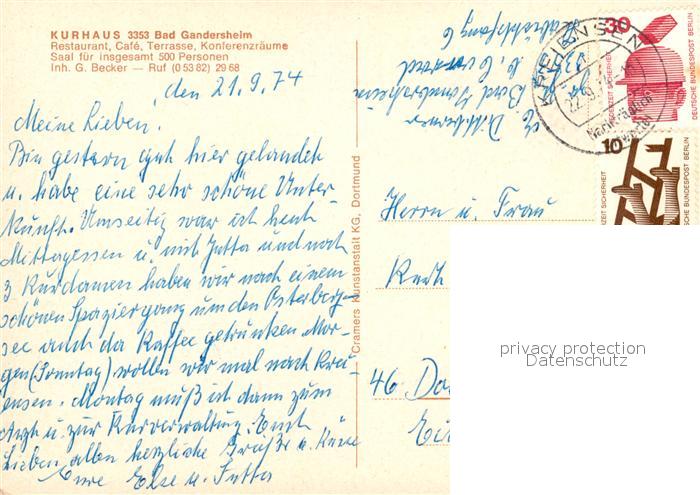 73062404 alte Postkarte Gandersheim Bad Kurhaus postalisch gelaufen Erhaltung siehe scans [KathaD81] KatCode: 11110003155001