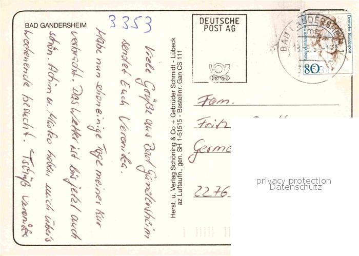 72796759 alte Postkarte Gandersheim Bad Luftaufnahme Kurpark postalisch gelaufen Erhaltung siehe scans [KathaD81] KatCode: 11110003155001